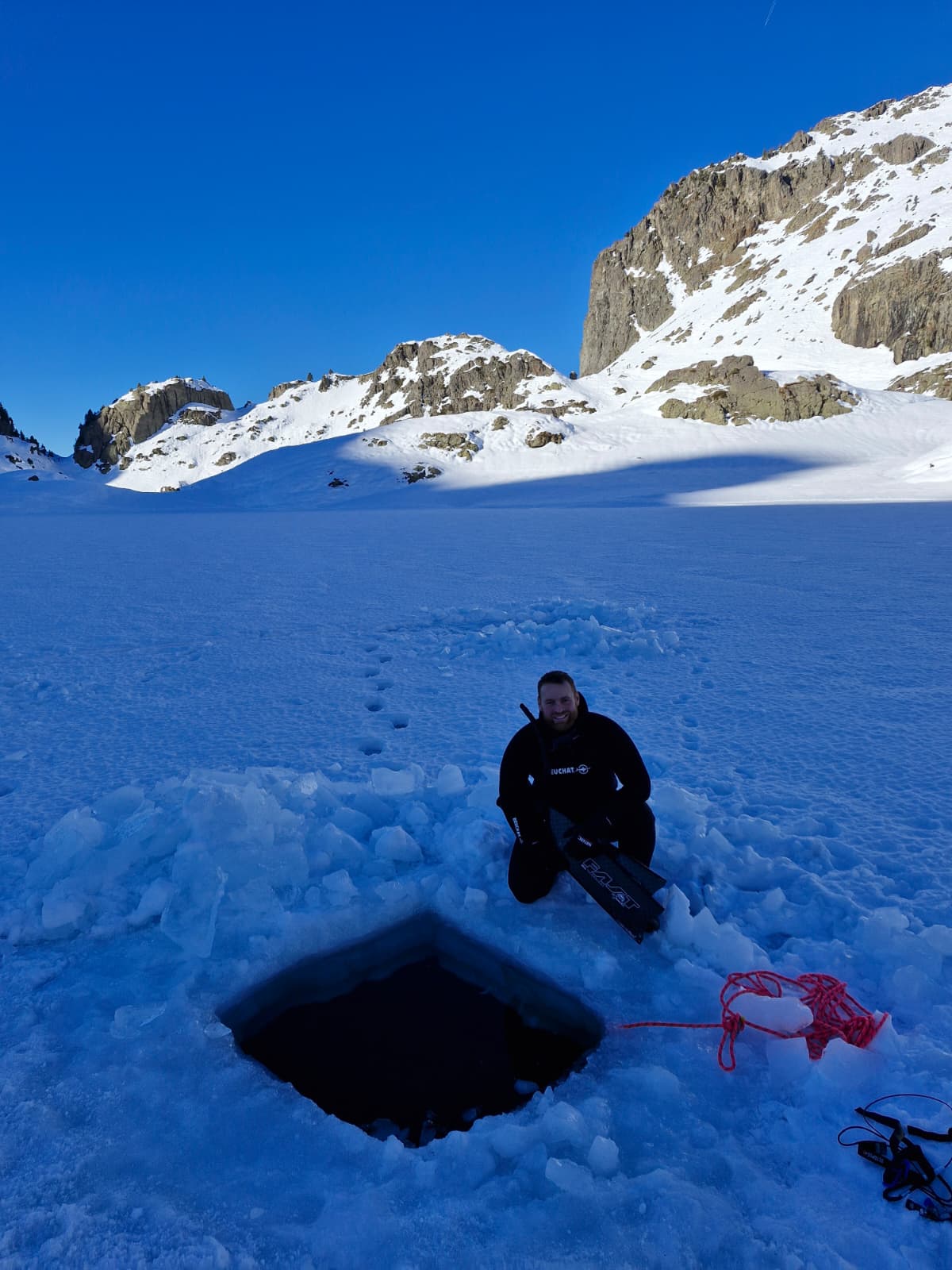 -Après-midi : Deuxième session apnée sous glace (ou plongée bouteille) -